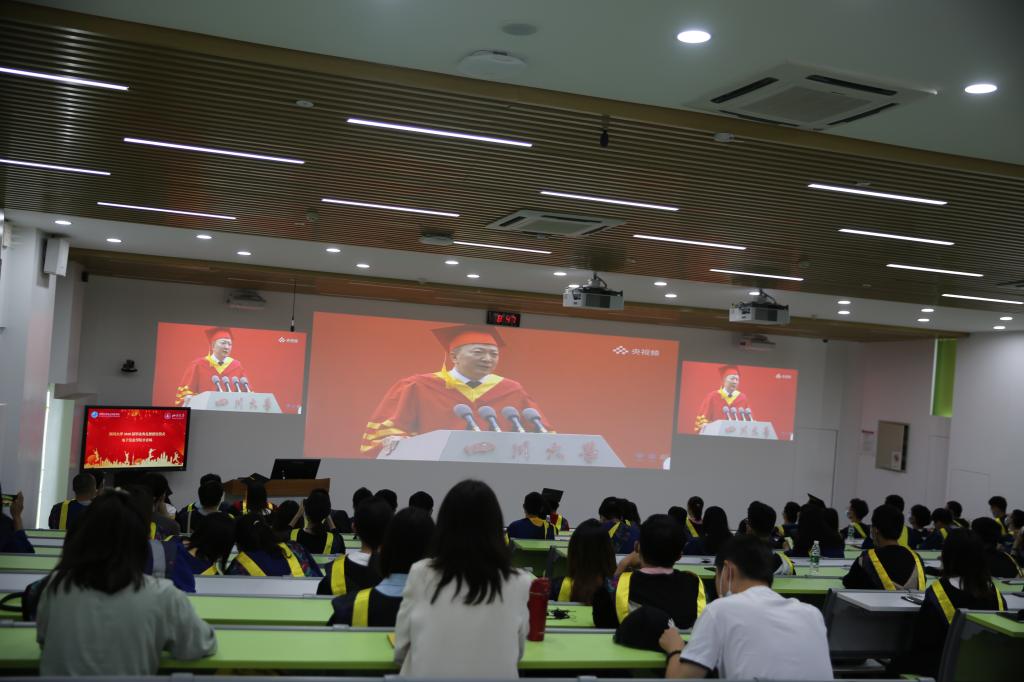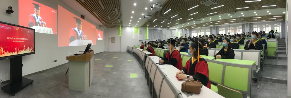 太阳集团tyc972840名毕业生在主会场参加了典礼,党委书记邰明松同志、院长冯国英教授和部分院领导、导师、辅导员,以及100余名毕业生在望江校区基教楼C201的分会场参加了典礼。