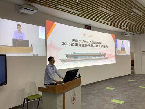 随后是2019级在校生代表安海华同学和2020级新生代表张鹤晨同学的发言,安海华同学讲述了精彩的研究生生活,为使新生们在未来的学习生活中,能尽快进入状态,向大家分享了心得和体会,共同勉励;张鹤晨同学表达了对研究生新生活的热情期盼,对未来生活的美好憧憬。最后,由张启灿院长做新生入学教育,讲述了一些在研究生学习阶段的要求,并提出要勇担民族使命,严于律己,指导全体新生树立学习目标,帮助他们走好研究生旅途的第一步。