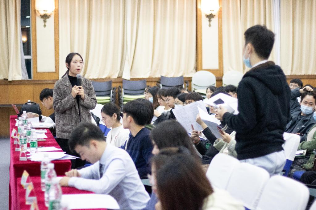 在最后的答疑环节中,各学院研分会负责人针对日常工作中遇到的问题、综合组织中心考评细则有异议的地方进行提问或提出建议,校研究生会负责人对相关问题给予了详细解答。