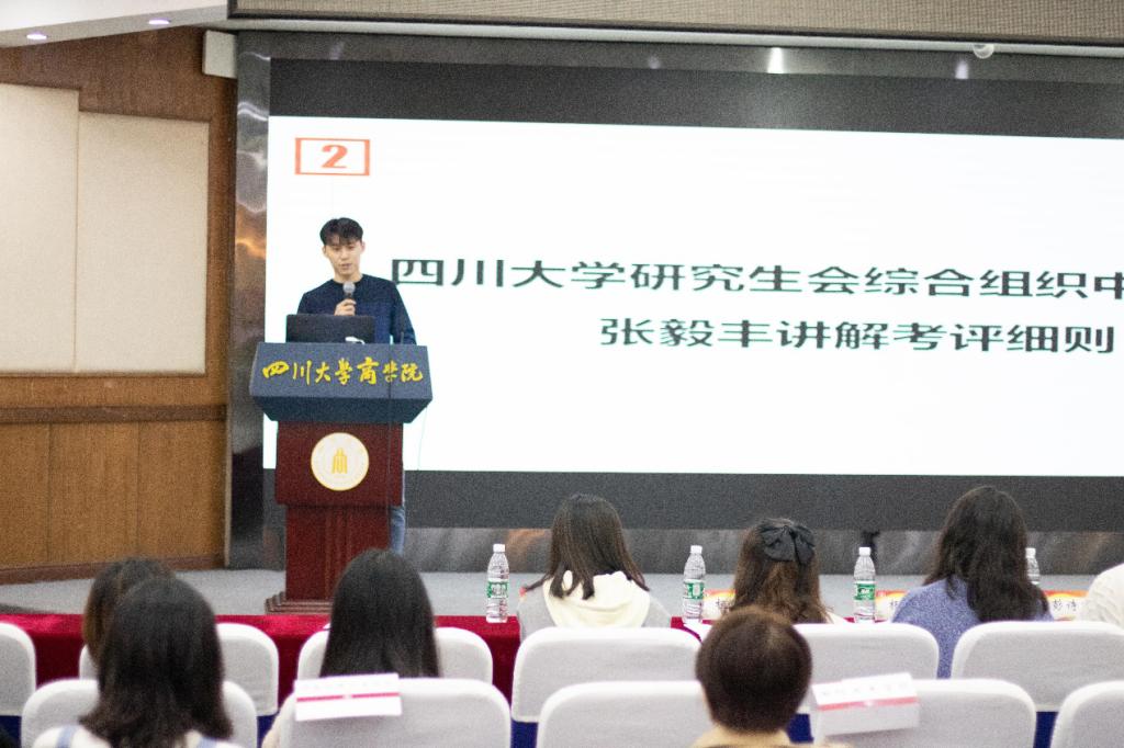 首先,彭诗睿主席发表会议讲话,希望各级研究生会的同学能够充分发挥研究生会的平台作用更好地服务同学、完善自我。然后,彭诗睿主席宣布ok138cn太阳集团十佳研究生会获奖名单,张毅丰主任为各代表颁奖。