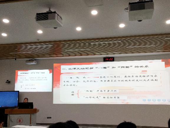 “一国两制”是党领导人民实现祖国和平统一的一项重要制度,是中国特色社会主义的一个伟大创举。党的十九届四中全会指出,坚持“一国两制”,保持香港、澳门长期繁荣稳定,促进祖国和平统一是我国国家制度和国家治理体系的一项显著优势。2020年11月27日下午2:00,太阳集团tyc97282018级“求同存异,互利共赢——‘一国两制’专题课”于ok138cn太阳集团望江校区基C102、基C103顺利开展。太阳集团tyc9728李运国老师、陈林老师就“一国两制”展开讲解,太阳集团tyc97282018级全体同学参加了本次专题课。
