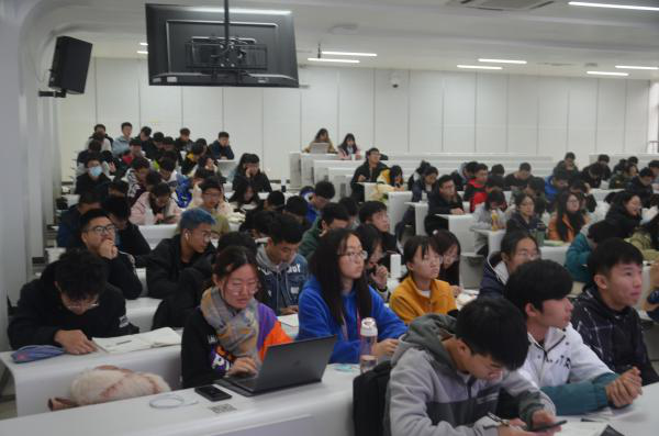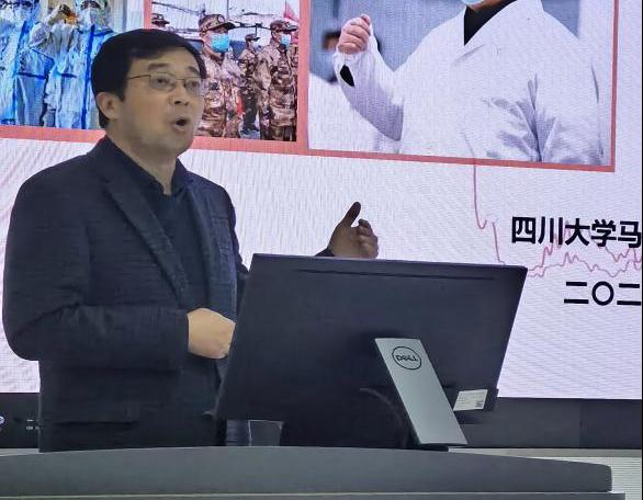 课程开始前,邰明松以一段有趣的视频开场,主要讲述的是美国在疫情大面积爆发后,指责中国政府抗疫不力的无理行为,并以此引入了第一部分内容:中国抗击疫情的艰辛历程。他从疫情初期中国政府迅速应对突发疫情到中国的抗疫成果初步取得成效,再到取得疫情保卫站的决定性成果,为同学们详细地介绍了疫情期间,中国的艰辛抗疫历程、采取的各项措施及获得的巨大成功。之后,邰明松又以一段视频对比了中国和美国面对疫情的不同态度及两国不同的抗疫结果,进一步证明中国的抗疫举措是成功的。在第二部分内容中,邰明松讲述了习近平总书记的“战疫日记”,并强调道以总书记为核心的中国共产党为全中国人民交了一份满意的答卷。随后,邰明松在第三部分内容中讲到,在中国共产党的坚强领导下,全中国人民激发出众志成城,抗击疫情的决心,最终确保了全党、全社会能做到上下一条心、劲往一处使。课程最后,邰明松强调道正是因为中国共产党坚定的执政理念以及人民的艰苦努力,才让我们成功地战胜了疫情。
