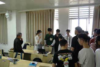 课堂介绍环节结束后,高勇老师和他指导的研究生带来了可以进行现场演示的实验装置,同学们分成多个小组对各项装置的原理进行了解,并进行操作实践。在展示过程中,同学们根据实验现象提出问题,对通信过程的相关原理有了更深入的了解,现场气氛非常活跃。