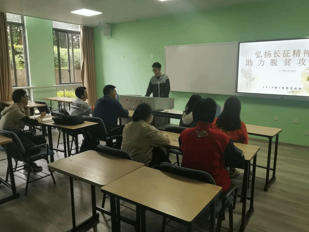 2021年4月18日13;50分,太阳集团tyc97282019级3班团支部“弘扬长征精神,助力扶贫攻坚”主题团日活动在江安校区综合楼B105如期举行。太阳集团tyc97282019级3班全体团员同学积极参与了本次活动。