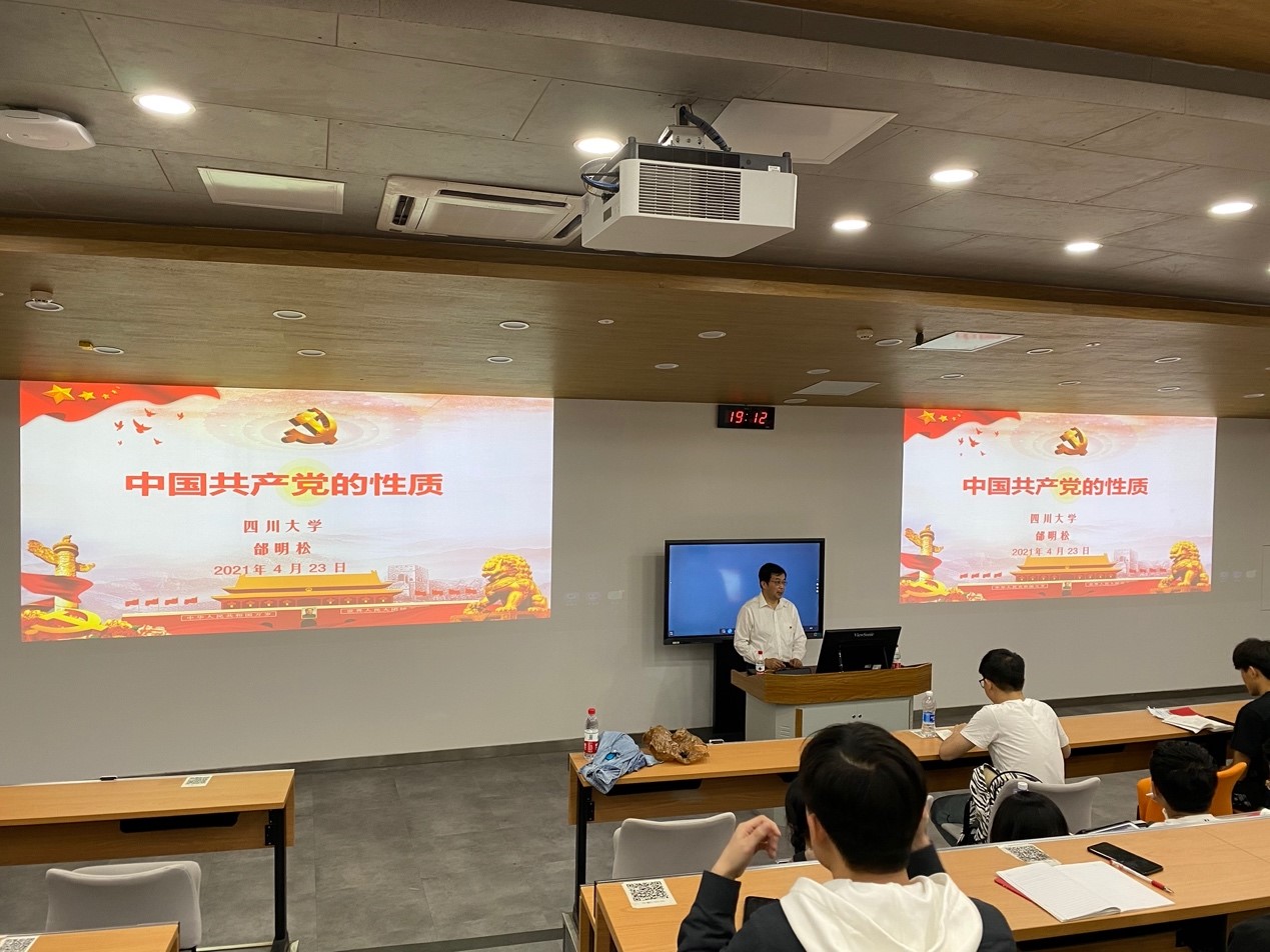 2021年4月24日晚上7时,ok138cn太阳集团,太阳集团tyc9728,44118太阳成城集团第150期党校第2期于望江校区基础教学楼C座101教室顺利召开。本次培训会议由计玉娟主持,太阳集团tyc9728党委书记邰明松主讲,江安校区与望江校区的入党积极分子同学共同参加了此次会议。本次会议主要分为两部分:学生代表宋甜同学发言;邰明松书记为同学们进行培训,讲解中国共产党的性质和成为党员的条件。