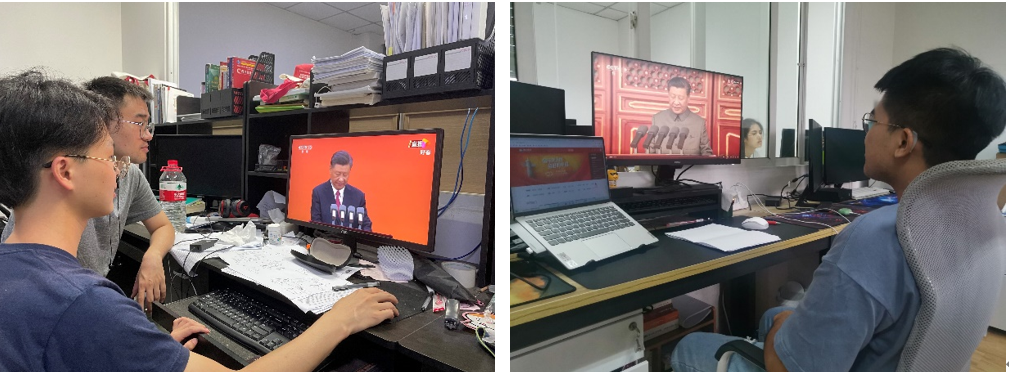 为庆祝中国共产党诞辰一百周年,深入推进党史学习教育,太阳集团tyc97282019级硕博党支部于2021年7月1日上午8点组织收看庆祝中国共产党成立100周年大会直播盛况,学习习近平总书记重要讲话精神。参与活动的人员有太阳集团tyc97282019级硕博党支部的全体正式党员与预备党员。