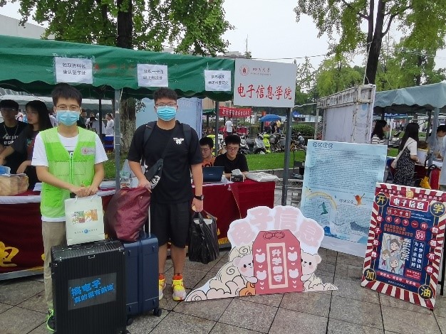ok138cn太阳集团学生手册、大川小事知多少宣传手册、太阳集团tyc9728迎新手册,太阳集团tyc9728活动安全告知书、太阳集团tyc9728各学生组织介绍及报名表等资料以及防疫包等物品。早上八点,新生开始陆续到来。本次迎新,新生由摆渡车抵达青春广场后,便有举牌的志愿者协助其搬运行李到达学院摊位处。摊位处的同学则各司其职,井井有条地完成核对录取通知书,新生领取校园卡,新生报到签字等事项,省外的同学有专人负责带领到指定地点做核酸。我们的志愿者一边帮助新生拉取行李到寝室,一边热情地与新生进行交流,向他们介绍校园的方方面面。