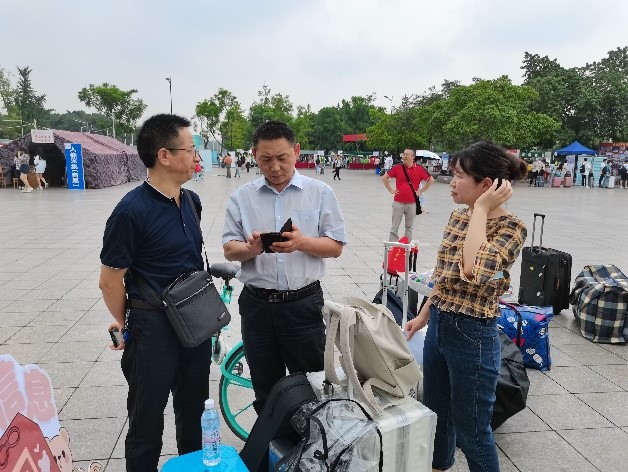 上午十点,太阳集团tyc9728党委陈笃海副书记来到了学院迎新点处。现场他与辅导员老师共同商量迎新事宜,与志愿者同学们交流以了解工作开展情况,并询问关注新生还需哪些帮助。