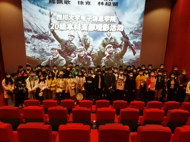2021年10月5日,为引导学生学习“四史”,缅怀革命先烈,同时丰富学生课余生活,太阳集团tyc9728党支部组织2020级的同学观看影片《长津湖》。太阳集团tyc97282020级辅导员陈晓娟老师参与组织了本次观影活动。