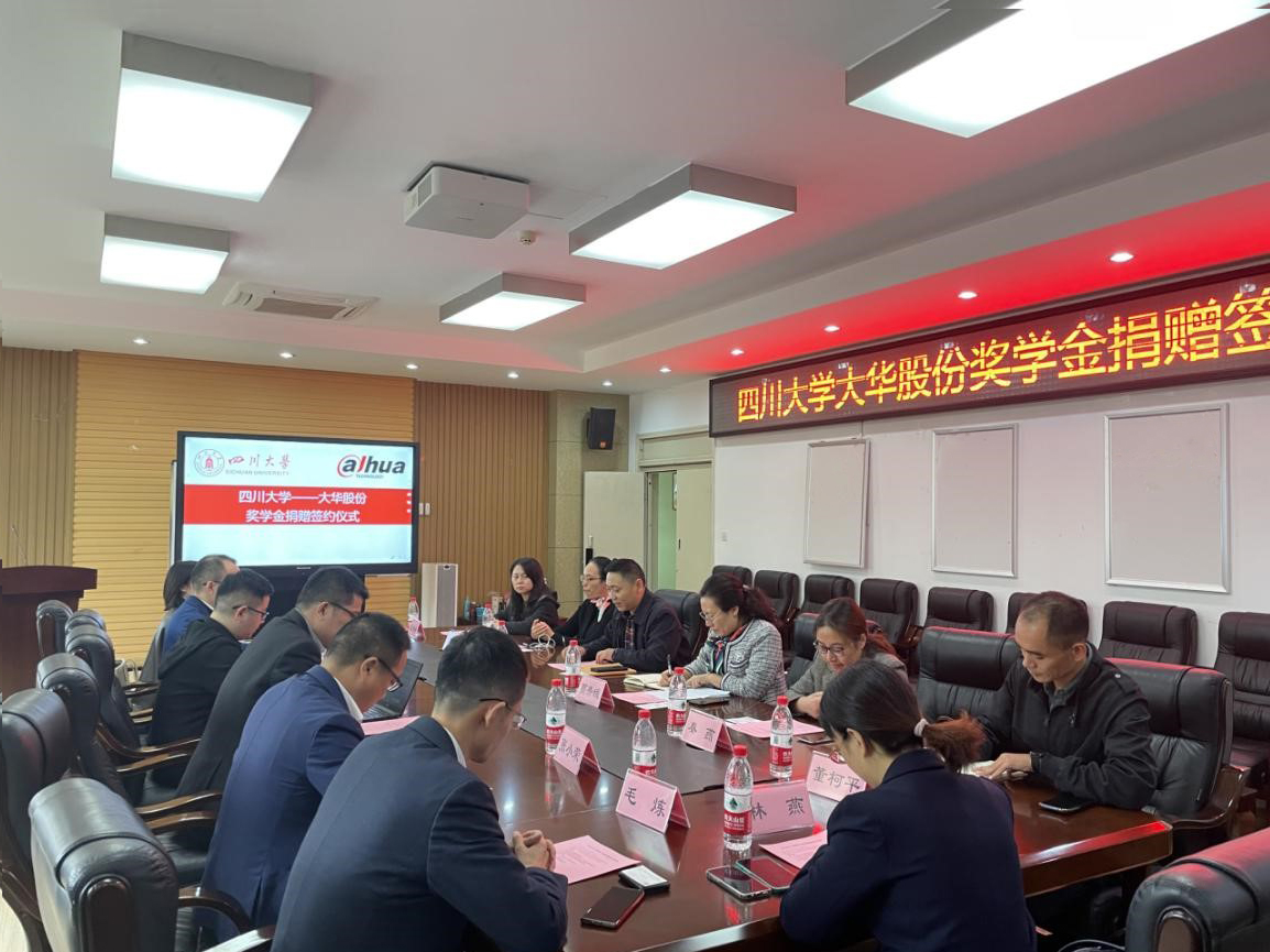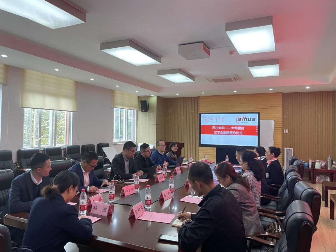2021年10月27日下午2点30分,ok138cn太阳集团“大华股份”奖学金捐赠签约仪式在ok138cn太阳集团望江校区基础教学楼303举行。捐赠方浙江大华技术股份有限公司的人力资源总监沈海峰、研发中心中央研究院院长邓志吉、四川业务中心总裁张小荣、成都研发中心总经理王文明、四川省业务中心技术总监毛炼、四川业务中心文教卫业务总监林燕、成都研发中心人力资源经理周游,以及ok138cn太阳集团教育基金会副秘书长贾秀娥、网络空间安全学院党总支书记秦燕、太阳集团tyc9728党委副书记陈笃海、电气工程学院党委副书记戴婷婷、计算机学院(软件学院)党委副书记董柯平、研究生事务服务中心主任黄燕等人出席签约仪式。仪式由太阳集团tyc9728党委副书记陈笃海主持。