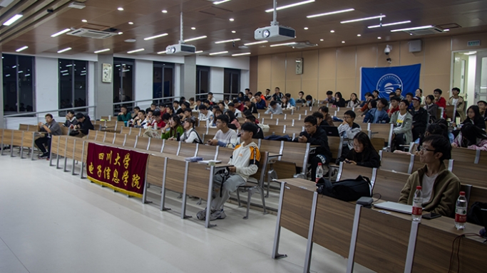 19时30分,宣讲会正式开始。首先宣讲的是李建平学长。上台后,学长先向同学们展示了往年比赛的题目,让同学们对比赛有了初步的印象。之后,他对题目进行了具体的分析,同时结合编程思路,完整清晰地展现出进行比赛时的思考过程。第二位上台宣讲的是王道叶学长。王道叶学长由学习软件切入,鼓励同学们积极查阅资料、善于使用资料。接下来,学长详细地介绍比赛使用的工具和器件,并具体讲解了使用方法。最后宣讲的是吴黄巍学长。吴黄巍学长在前两位学长发言的基础上,向在座同学分享参加竞赛的体会与感悟。他在鼓励同学们参加大赛的同时,还提醒同学们不要忽略平时的学习成绩,更不要因为暂时的困难选择半途而废。三位学长宣讲完毕后,在座同学们收获了宝贵的竞赛经验与启发。21时,电子科技创新大赛宣讲会圆满结束。