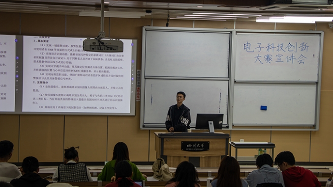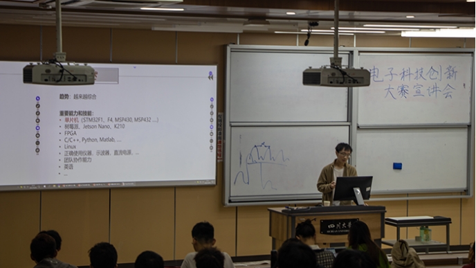 2021年10月30日,电子科技创新大赛宣讲会在ok138cn太阳集团江安校区综合楼C座C306教室成功举行。太阳集团tyc97282018级学长李建平同学、王道叶同学、吴黄巍同学以及有志向参加电子科技创新大赛的同学们参与了本次宣讲会。