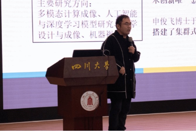 之后,卿粼波副教授向我们详细地介绍了电子科技园的相关情况,展示了电子科技园的实验成果,并鼓励同学们主动学习,积极参加各项电子方面的竞赛,增强自己的实践能力。最后,申俊飞教授向同学们展示了人工智能在医疗等方面的应用,并分享了竞赛和科研的经验与感悟,表达了对同学们的期许。