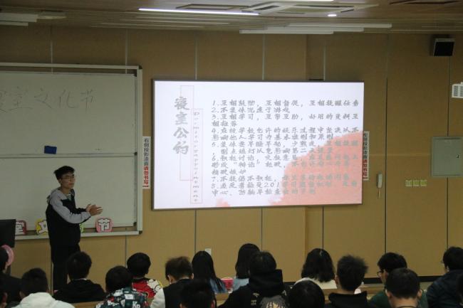 决赛伊始,辅导员孟滋常老师致辞,他希望同学们养成良好寝室卫生习惯,团结互助共同成长。接着,各参赛寝室按序上台展示。参赛寝室各有亮点,充分展现出和睦的寝室关系、优美的环境布置、详细可行的寝室公约以及学习计划。在展示环节,有的寝室自制娱乐视频,也有寝室现场唱歌表演,表现出了当代大学生积极向上的寝室文化。西苑8舍201寝室集思广益,以视频的形式演绎了幽默的校园生活与活泼的寝室氛围,加之干净整洁的寝室卫生和完成度较好的寝室公约,最终荣获一等奖。