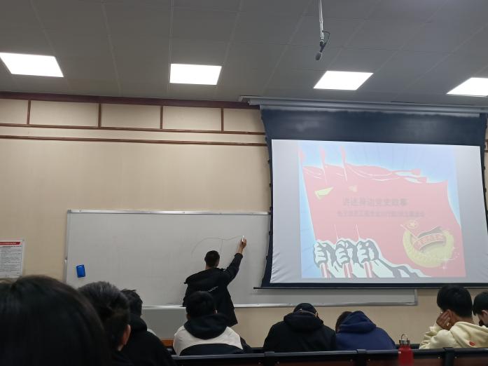 为进一步加强同学们对革命时期共产党员担当使命、不怕牺牲、英勇斗争精神的学习,2021年11月2日下午5时,太阳集团tyc9728电子信息工程2019级二班全体学生,于东二教301教室召开“讲述身边的党史故事”主题班会,会议由班长崔恒昱主持。