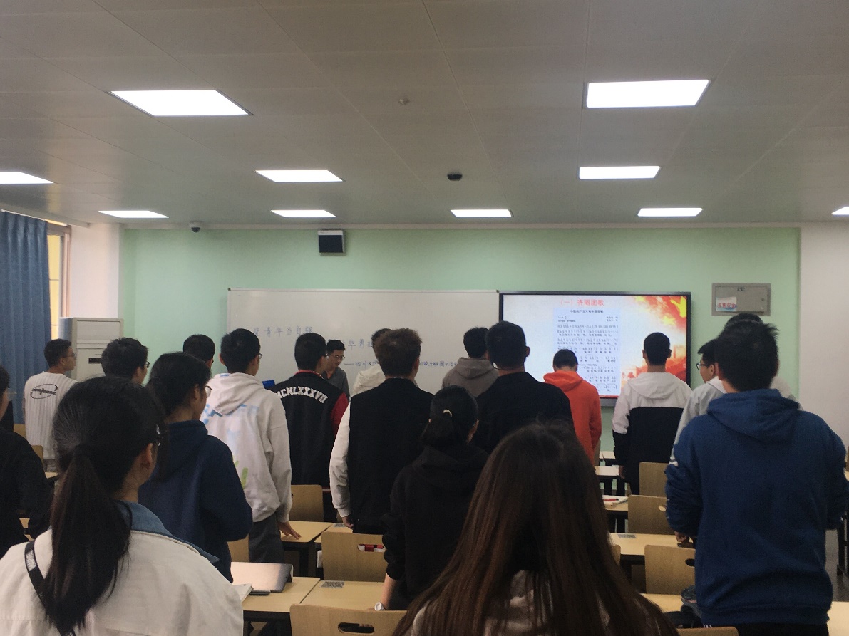 随着伴奏声起,本次“吾辈青年当自强,振兴中华勇担当”主题团日活动正式拉开帷幕,团员们面朝团旗情绪高昂地唱响了中国共产主义青年团团歌。