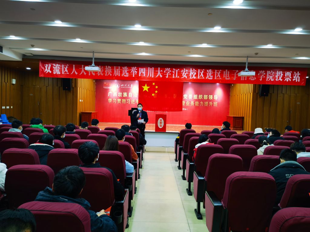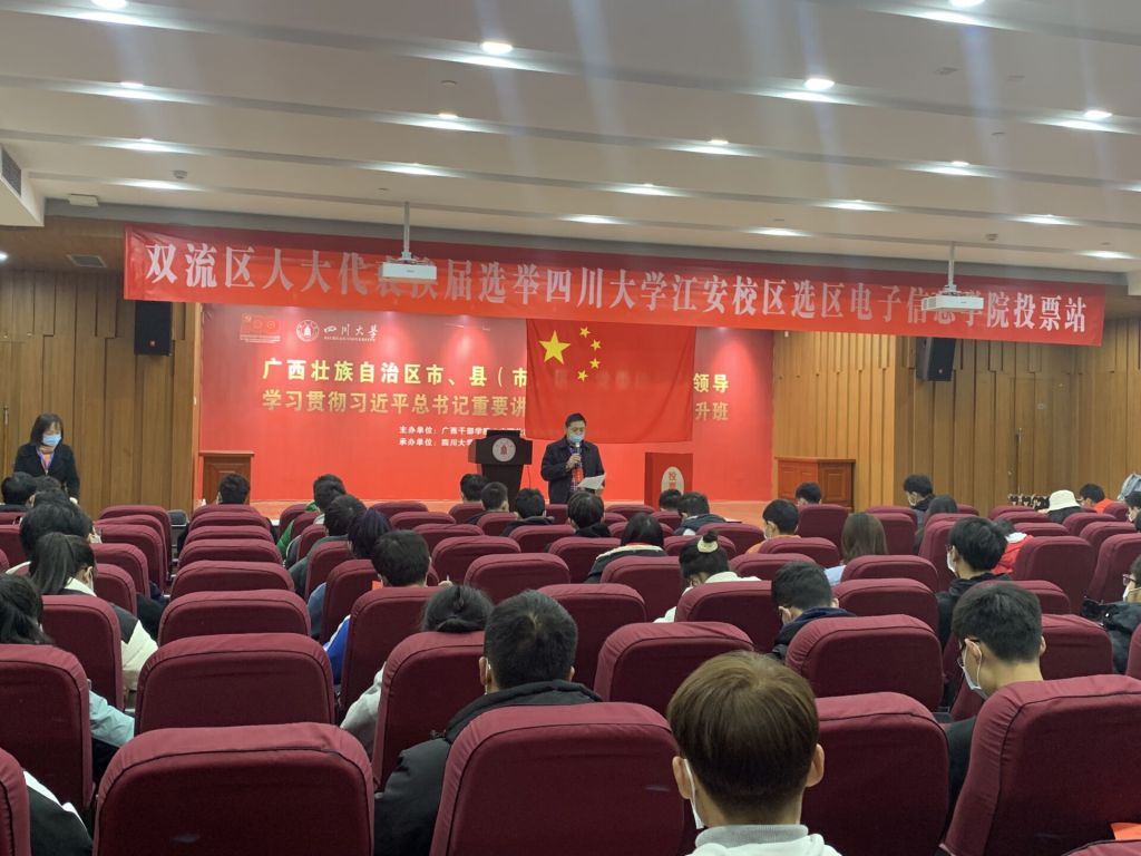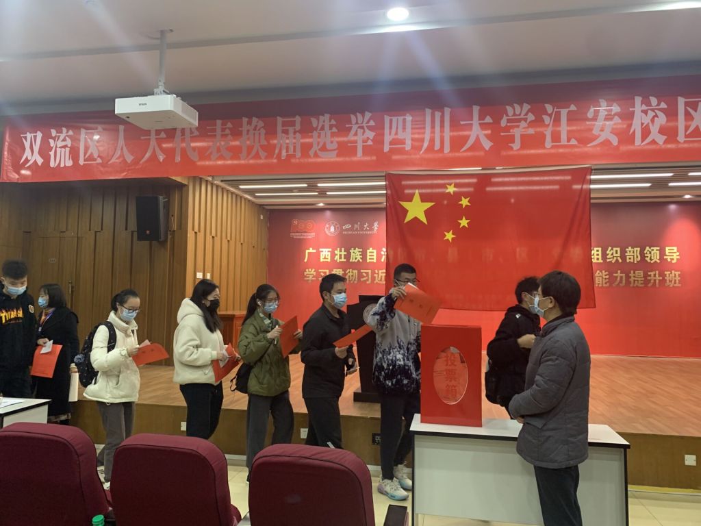 2021年11月28日9时10分,按照双流区人大换届选举工作安排,我院组织举行了双流区人大代表换届选举大会,我院本科20、21级600余名选民在投票会场投下了自己庄严的一票,规范有序地完成了人大代表换届选举投票活动。