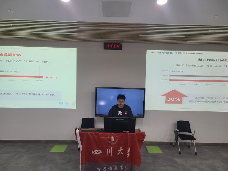 ok138cn太阳集团百川学生宣讲团太阳集团tyc9728分团第四次宣讲于2021年12月10日在ok138cn太阳集团望江校区基础教学楼C座104教室面向本科2019级同学开展。本次宣讲由2019级本科党支部宣讲员邹浩宇带来题为“习近平新时代中国特色社会主义思想是党和国家必须长期坚持的指导思想”的分享。学院李运国老师、吴秀玲老师以及2019级本科光信息科学与技术专业、通信工程专业同学参加本次宣讲会。