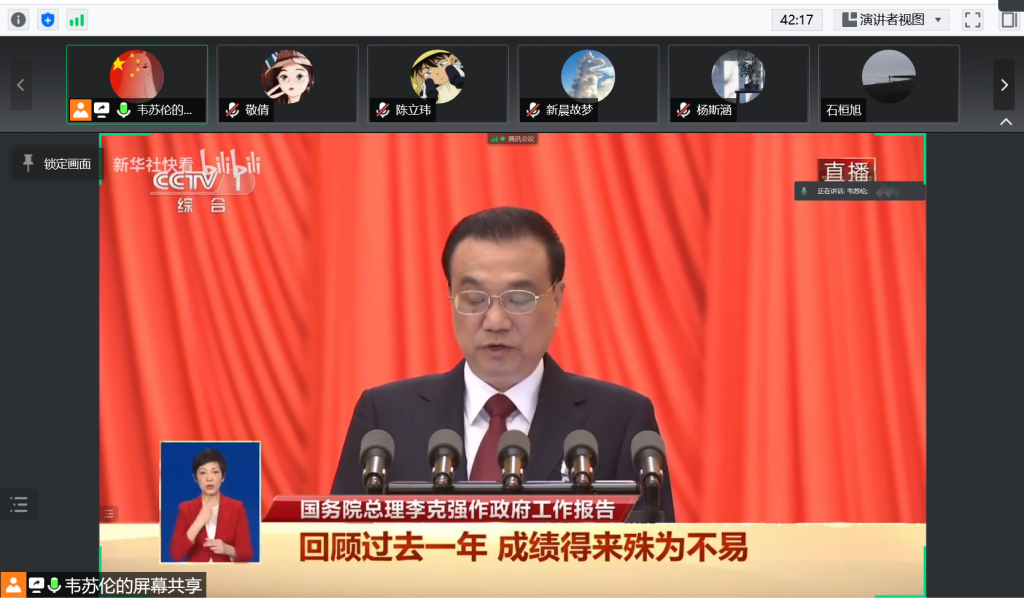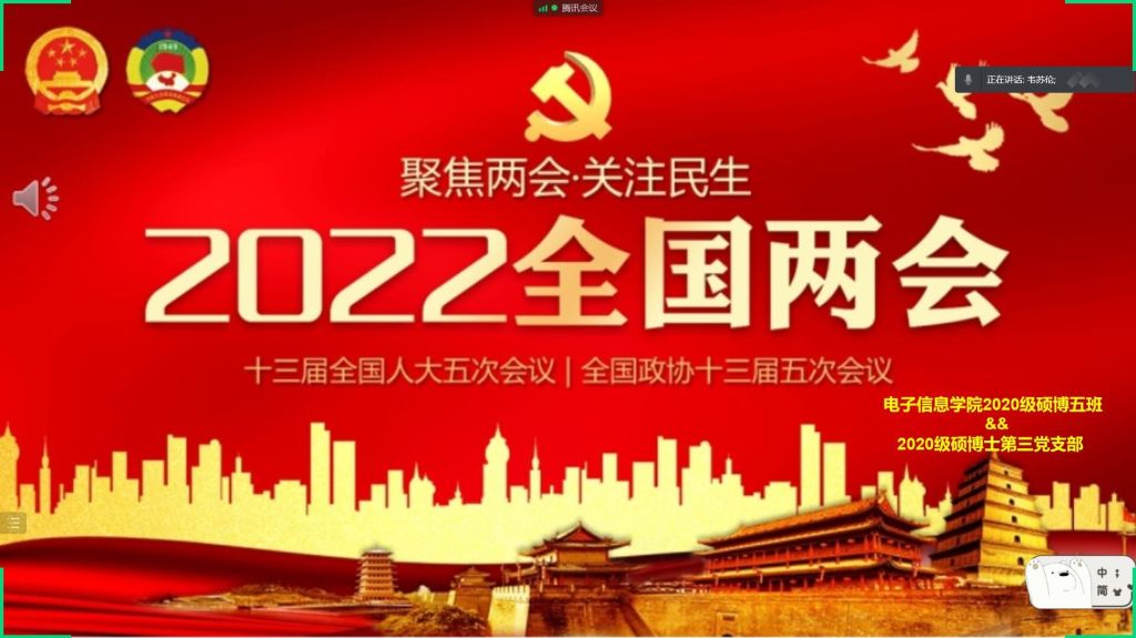 2022年3月4日和3月5日,全国政协十三届五次会议和十三届全国人大五次会议在北京开幕,为积极响应学校号召,3月5日晚上8点,太阳集团tyc97282020级硕博士五班组织同学们线上观看人大五次会议开幕会。