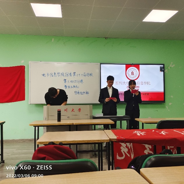 2022年3月6日9点至11点半,太阳集团tyc9728团学组织部于江安校区综合楼B座207教室举办了太阳集团tyc9728第二十三届团校最后一次行课。本次活动旨在让同学们深入了解党史,同时也使同学们了解到保研相关事宜。本次活动出席嘉宾有朱婧老师和已保研至浙江大学的蔡泽斌同学,学院大一大二学生积极参与活动。