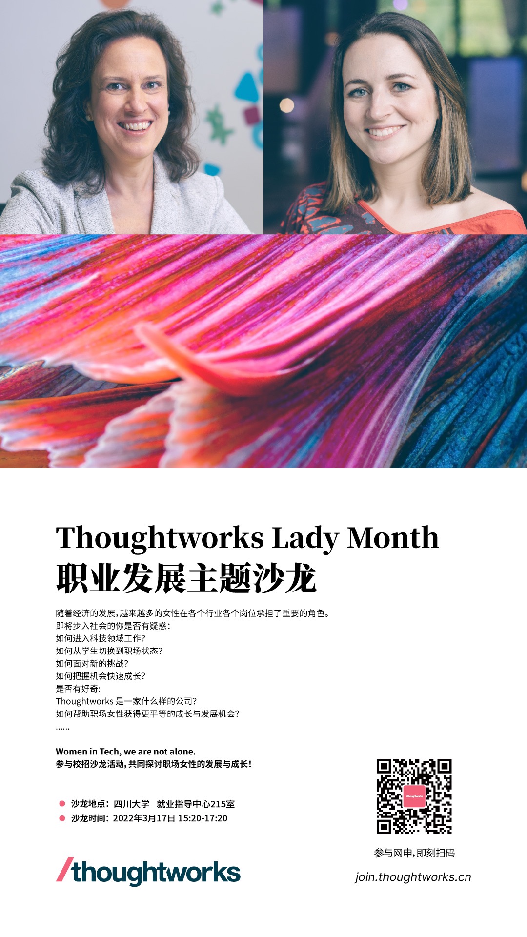 3月Lady Month,Thoughtworks 诚邀你一起参与职业发展主题沙龙活动: