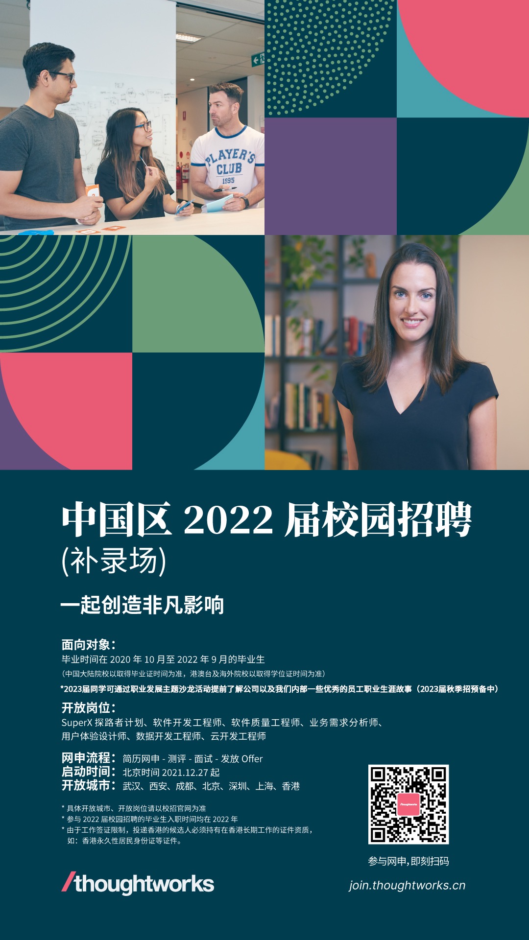 2022届同学可直接点击链接,立即网申,和全球 10000+ Thoughtworkers 一起创造非凡影响!
