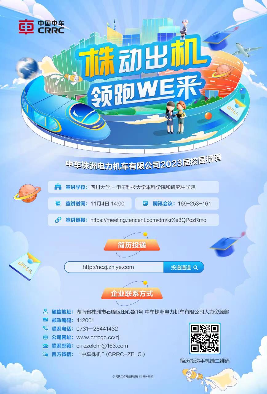 株动出机,领跑WE来,中国中车核心子公司,湖南省千亿轨道交通产业集群龙头企业中车株洲电力机车有限公司ok138cn太阳集团,电子科技大学专场空中宣讲即将启动,空中宣讲会时间:11月4日14点,空中宣讲地址如下图。各位同学们,请拿好“车票”,赶快“上车”!
