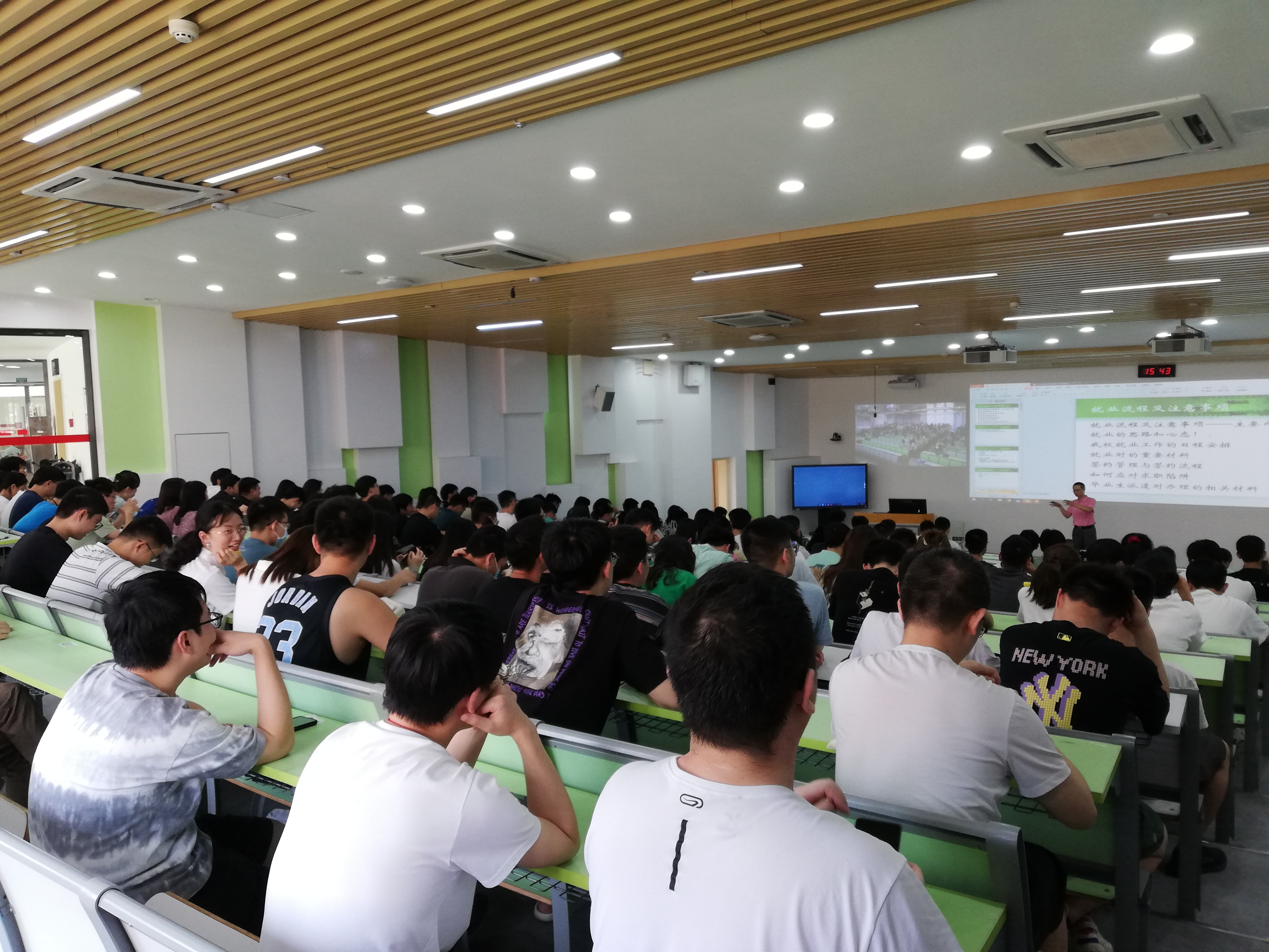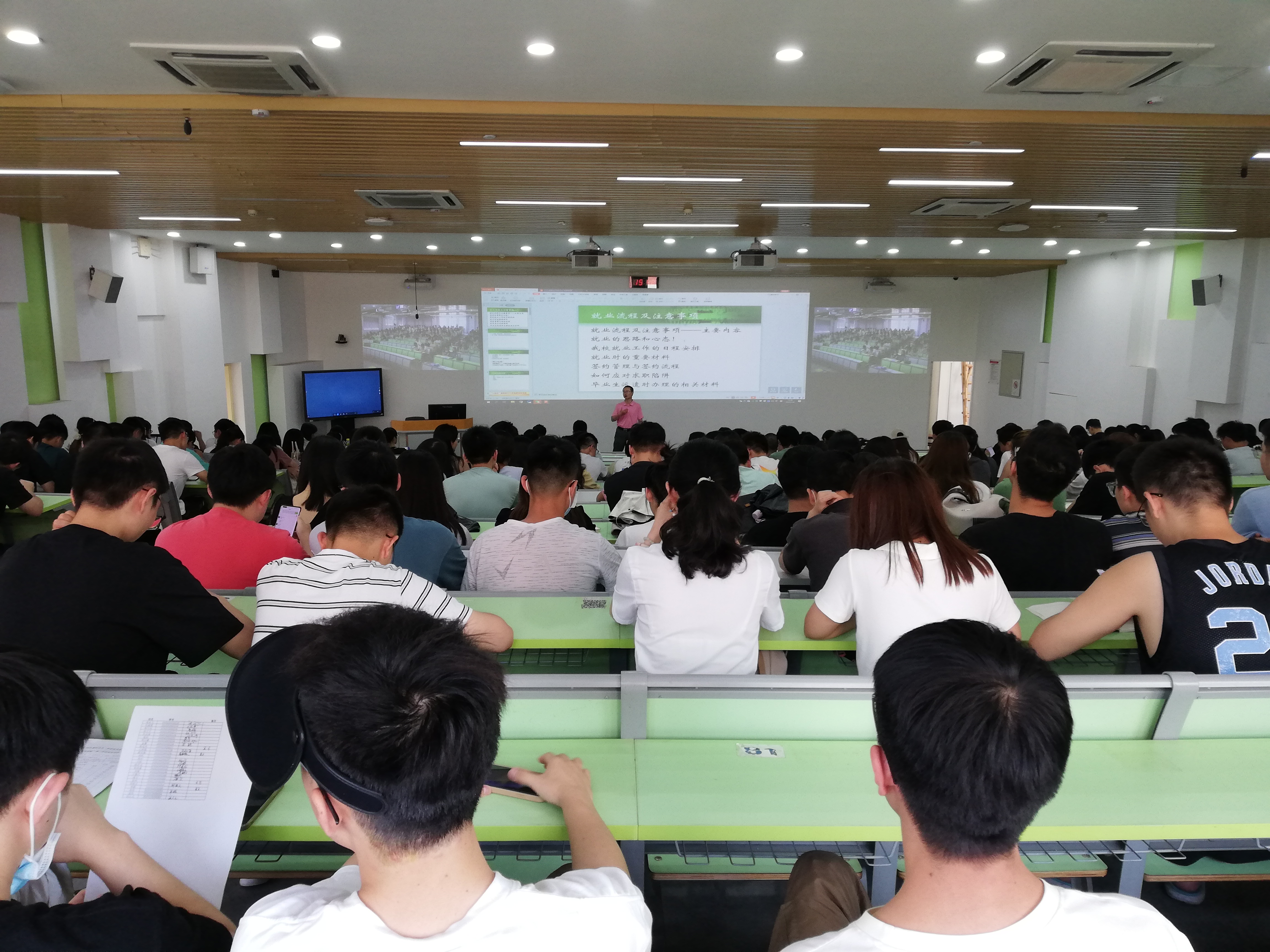 最后谢老师讲解了关于生源审核、就业推荐表和就业协议等填写注意事项,提醒同学们考虑成熟再签约,11月的时候争取都签约完成。