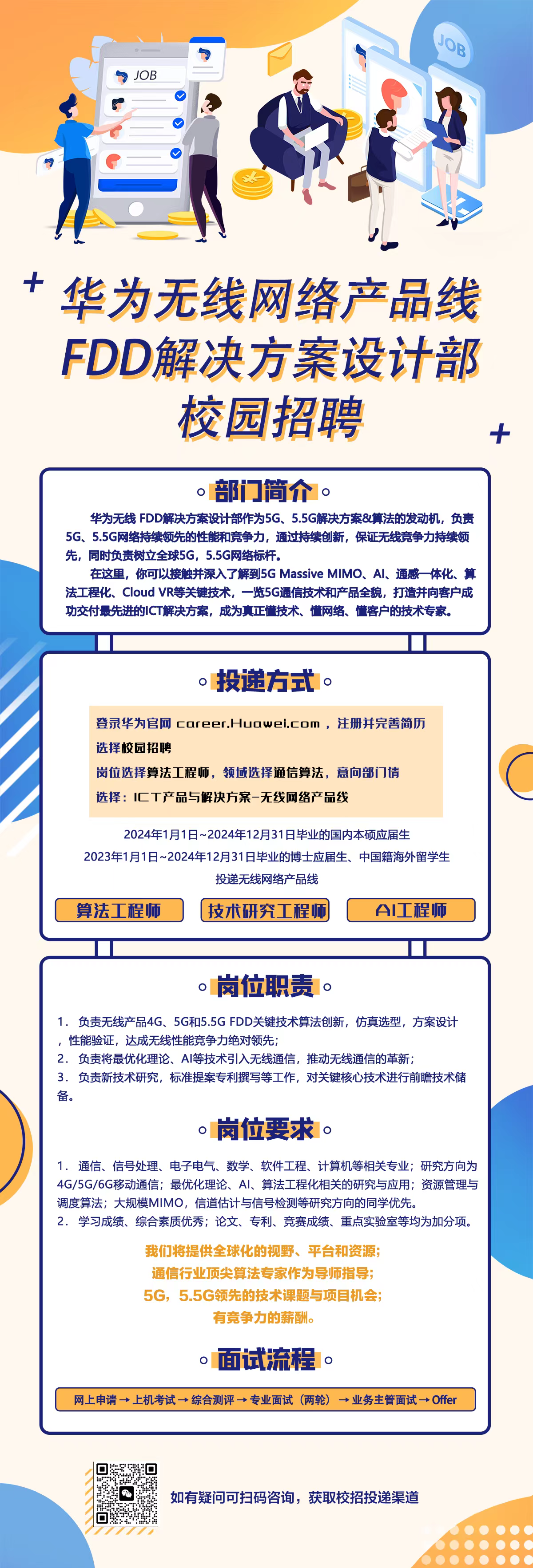 上海华为无线设计部招聘,算法岗位诚招本、硕、博,名额多多,欢迎大家投递呀~