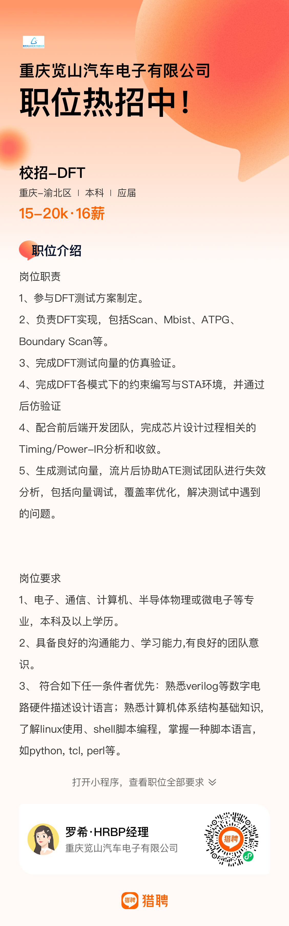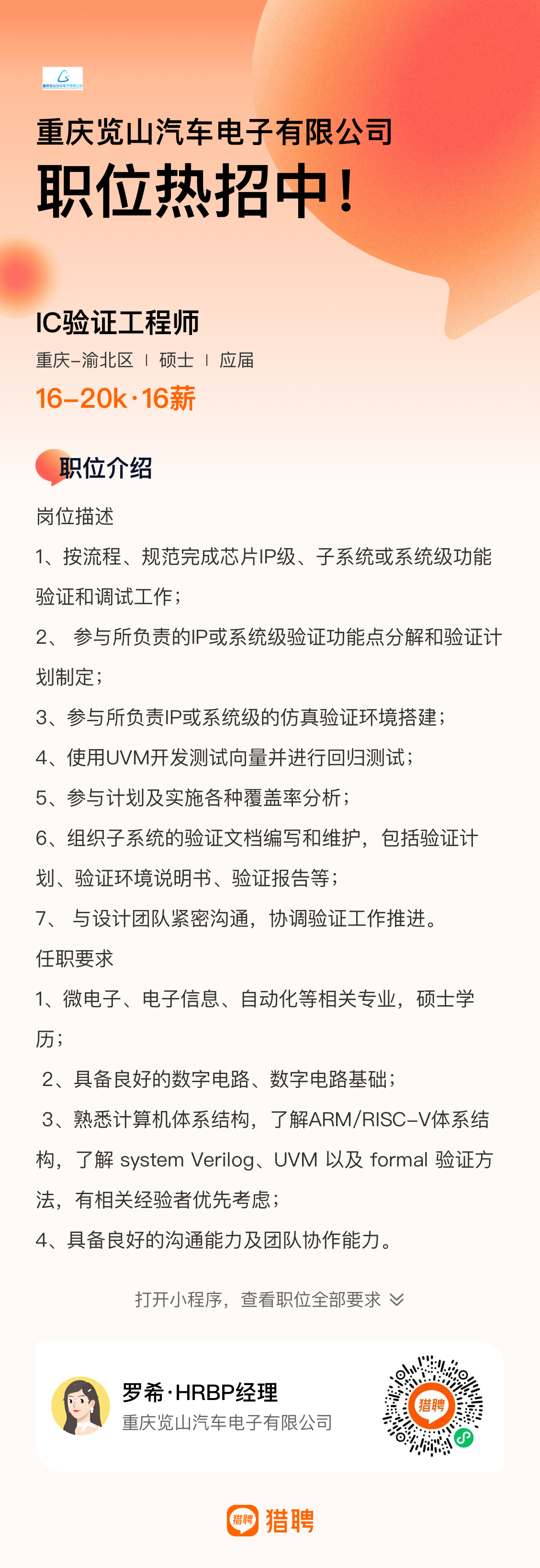 重庆览山汽车电子2024春招