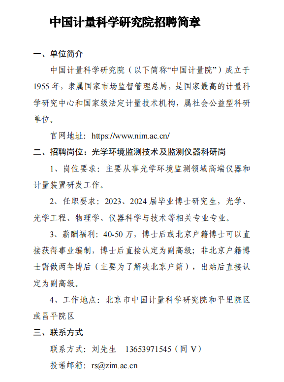中国计量科学研究院招聘简章