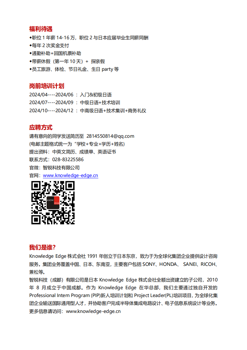 我们的职位均有日语0基础的培训+技术培训哦!