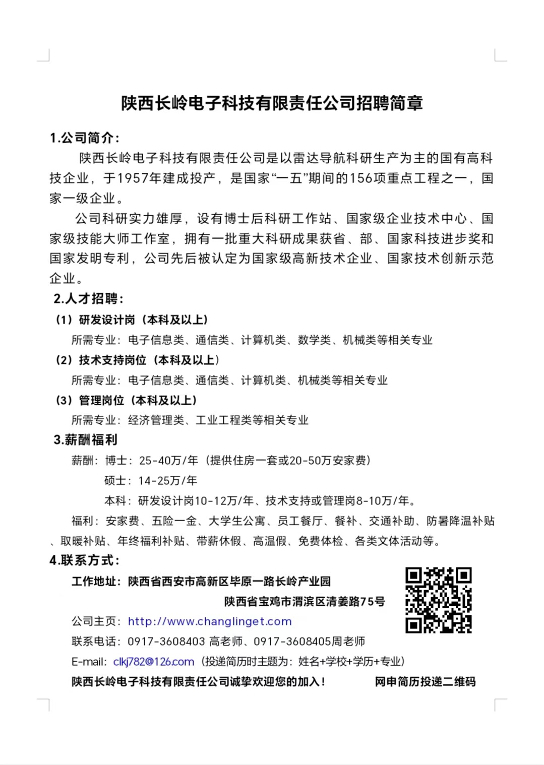陕西长岭电子科技招聘
