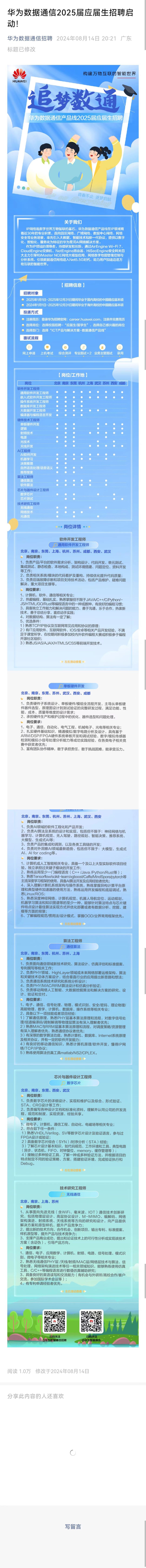华为数据通信产品线校园招聘,有意愿加入华为的同学可以投简历。