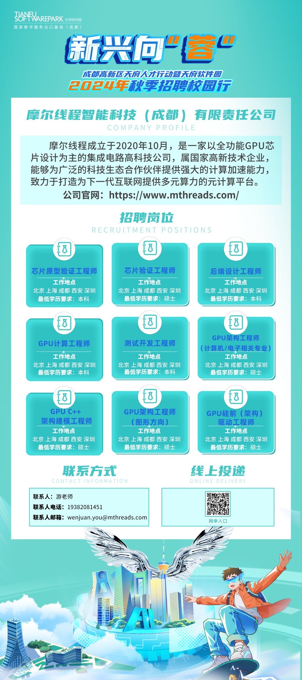 摩尔线程智能科技(成都)有限责任公司2024年秋季招聘