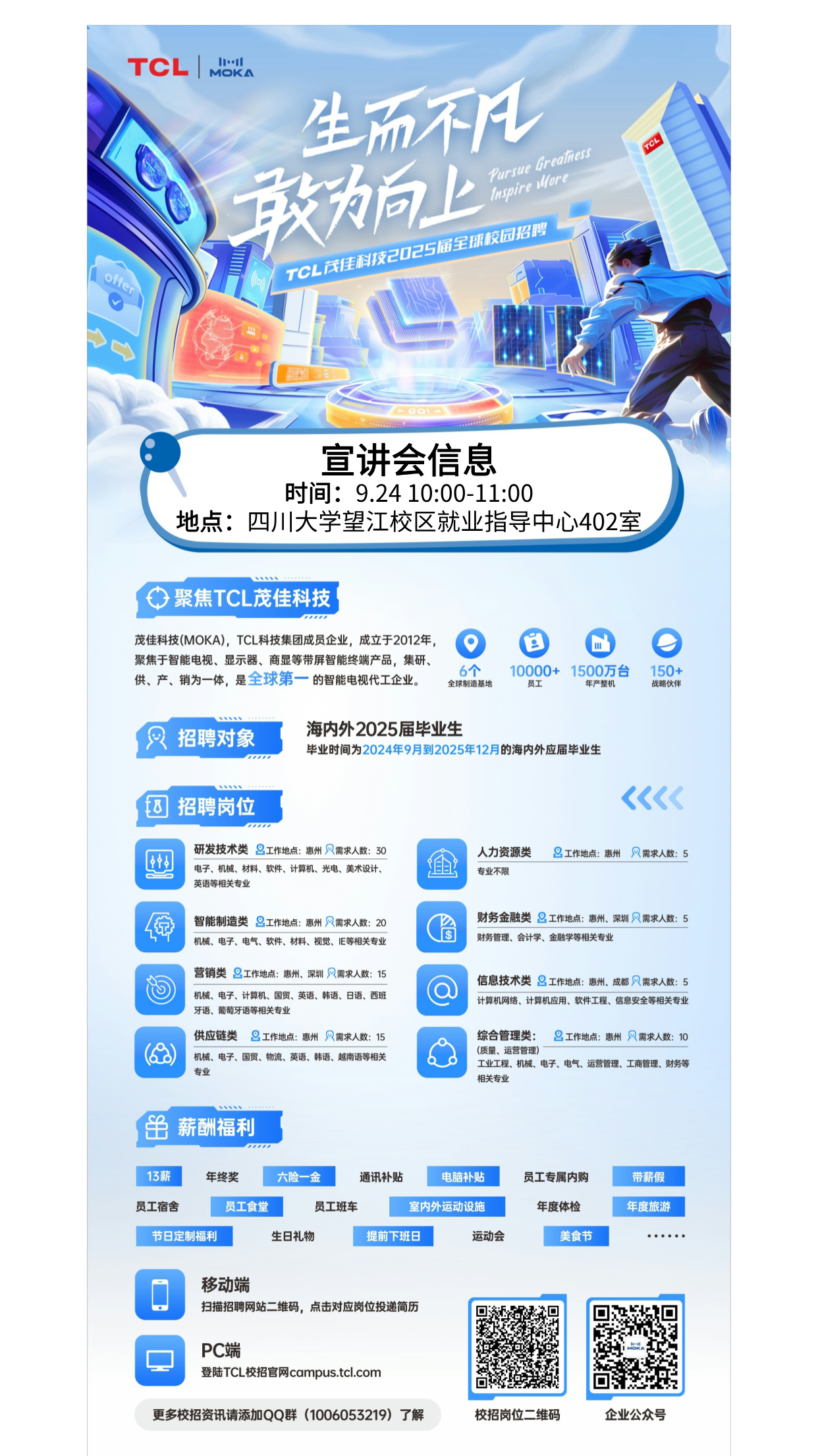2025 TCL MOKA 校招启动文:https://mp.weixin.qq.com/s/P2jkOahguV9O0i9_6iNijw