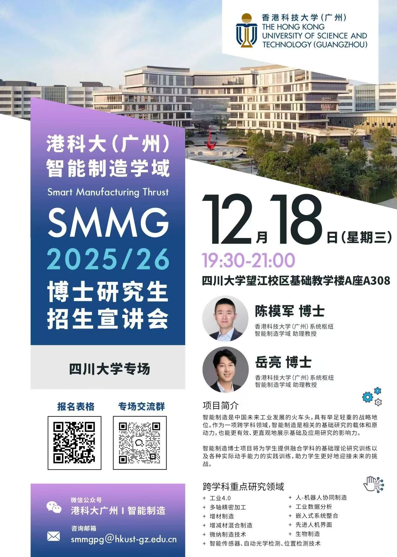 香港科技大学广州|智能制造学域博士招生宣讲会—ok138cn太阳集团专场