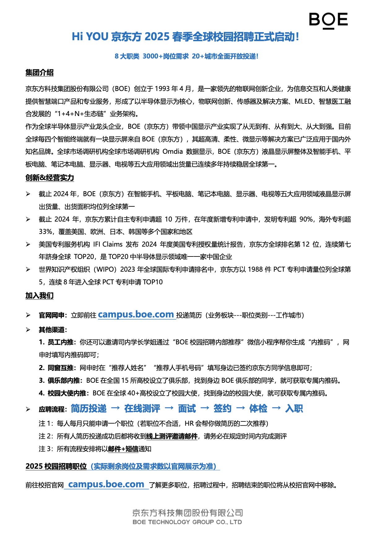 京东方科技集团股份有限公司(BOE)创立于1993年4月,是一家为信息交互和人类健康提供智慧端口产品和专业服务的物联网公司,形成了以半导体显示事业为核心,Mini LED、传感器及解决方案、智慧系统创新、智慧医工事业融合发展的“1+4+N”航母事业群。