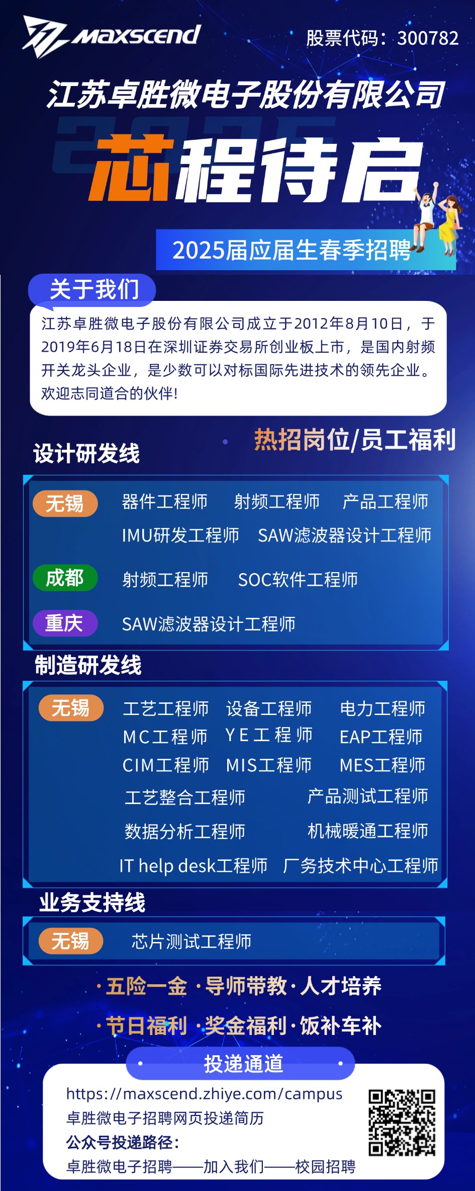 江苏卓胜微电子股份有限公司成立于2012年8月10日,于2019年6月18日在深圳证券交易所创业板上市。 股票简称:卓胜微,股票代码:300782。