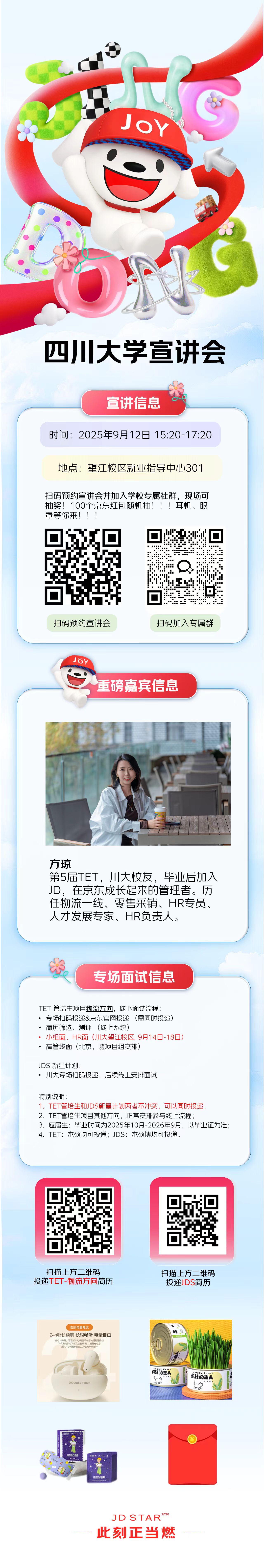 【校友嘉宾】:宣讲现场会有精彩的校友分享,京东业务、京东技术、校招项目,所有你想了解的信息尽在宣讲会现场!