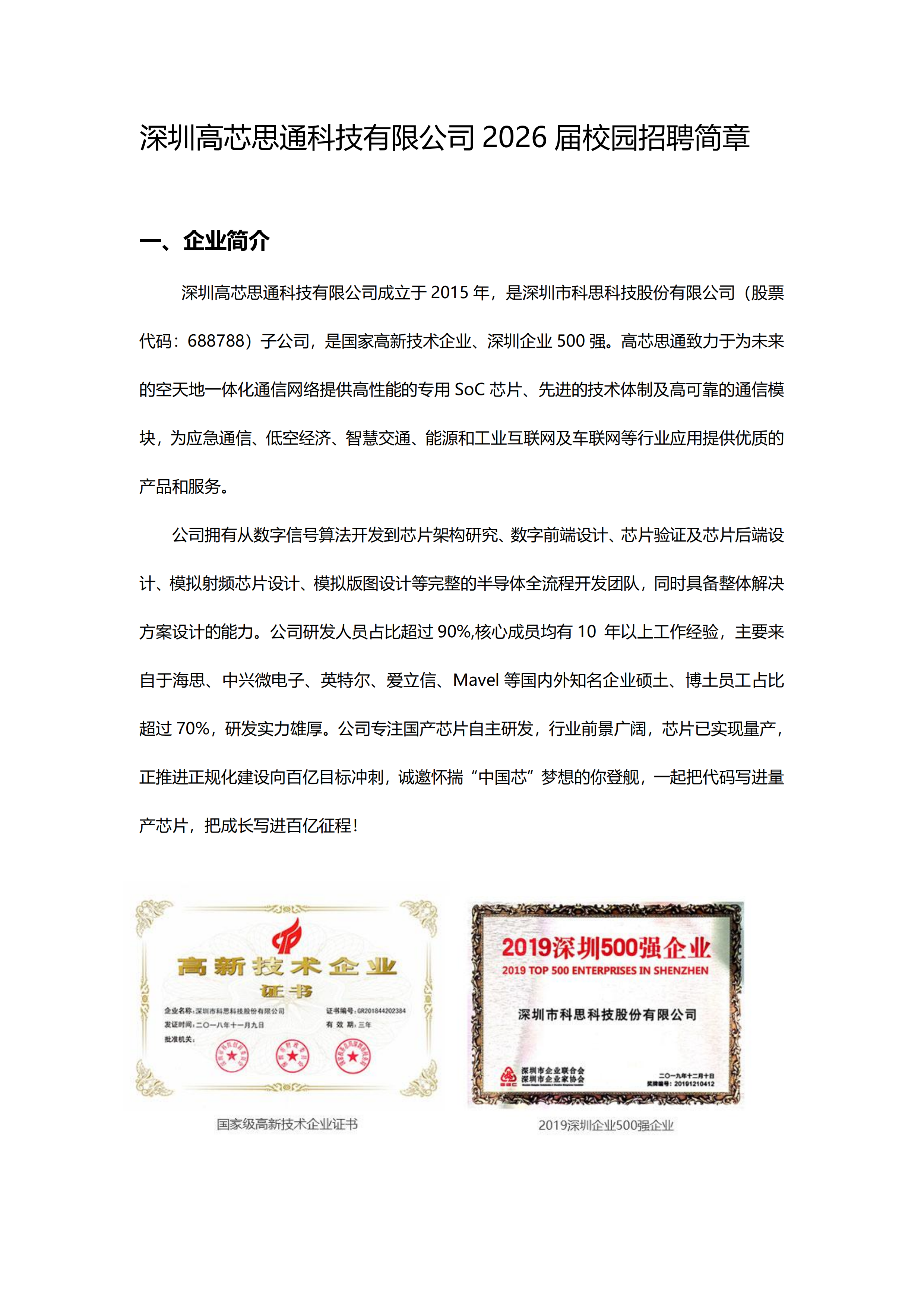 深圳高芯思通科技有限公司26届校招
