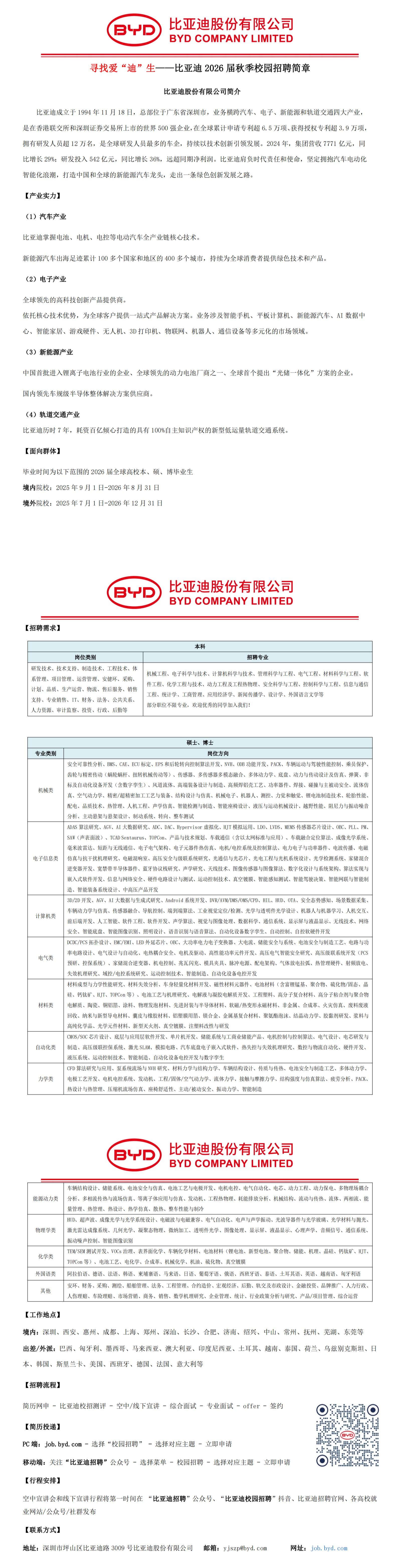 比亚迪2026校园招聘