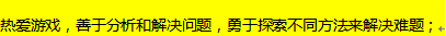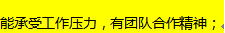 心态稳定,勤奋好学,善于思考,勇于面对挑战,知识面丰富尤佳; 责任心强,善于团队协作,执行力到位;