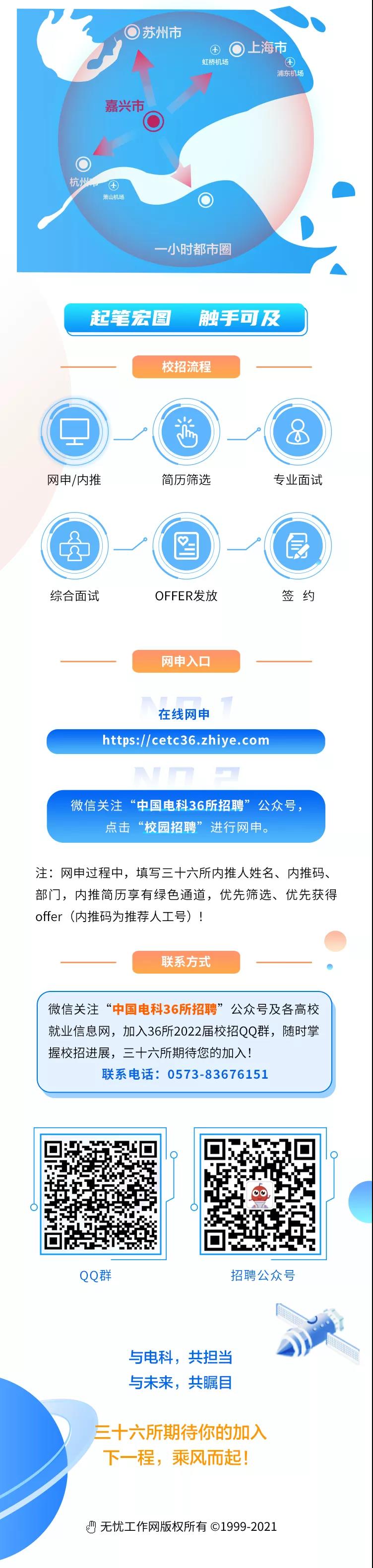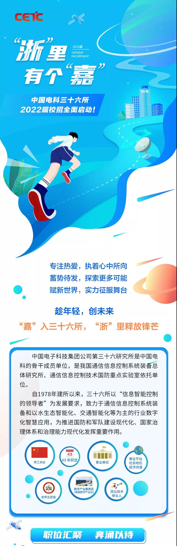 中国电科三十六所2022届校招宣讲会:【ok138cn太阳集团】9月26日15:20-17:20,就业指导中心221室★事业编制、安家费(硕士15-28万、博士35-68万)等福利,具体请登入各高校就业信息网查看,三十六所期待您的加盟!★请携带个人简历及相关材料参加现场宣讲,并完成网申,欢迎邀请其他同学参加现场宣讲会。