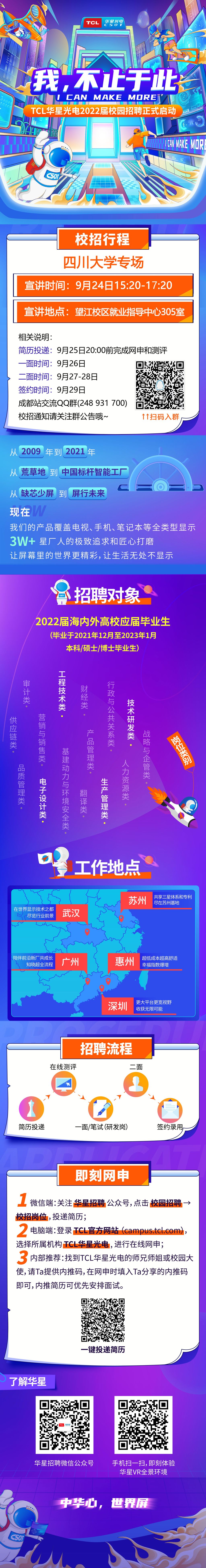 2000+份秋招Offer、全国七大招聘片区巡回宣讲、线上线下双轨道滚动招聘,TCL华星光电给你全新的未来!