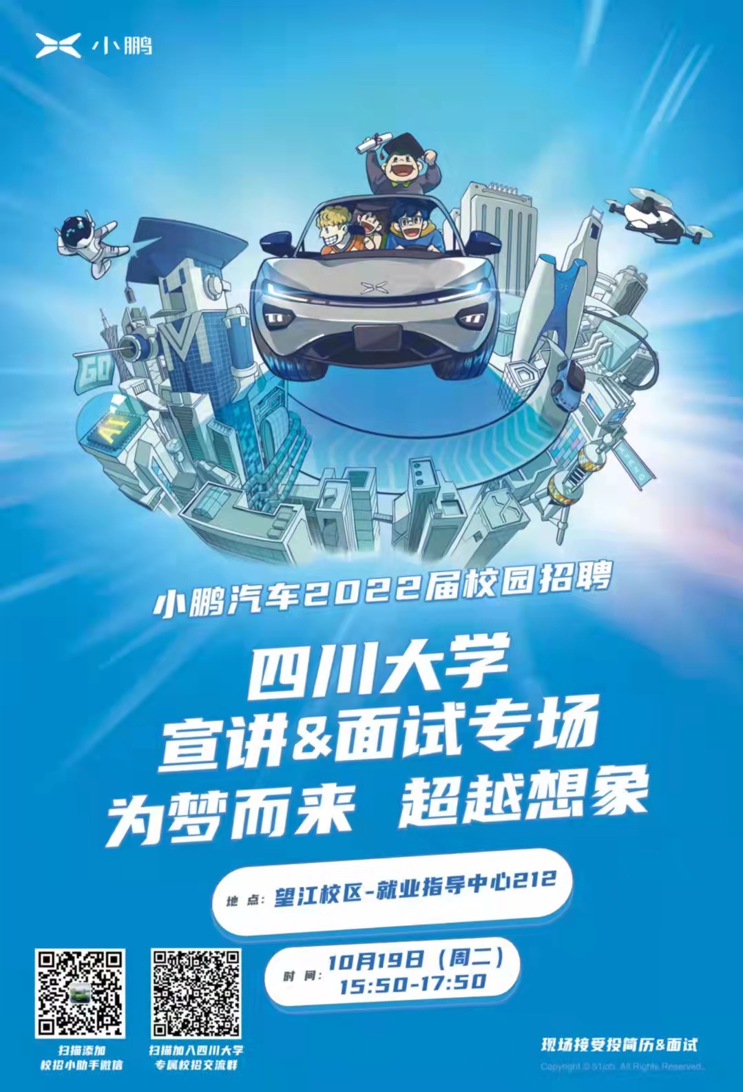 为梦而来,超越想象小鹏汽车“探索者计划”2022届校招-ok138cn太阳集团线下宣讲专场来啦~现场接收简历与面试哦~时间: 10月19日 下午 15:50-17:00地点: 望江校区-就业指导中心212为梦而来,超越想象,寻找志同道合的新一代智能探索先锋~12个业务板块400+岗位上千个需求~网申通道:https://campus.xiaopeng.com整车研发&产品规划&自动驾驶 全研发业务线大咖现场交流,快提前网申吧