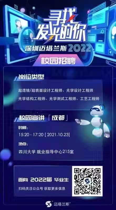 10月23日深圳迈塔兰斯招聘(光学类等)