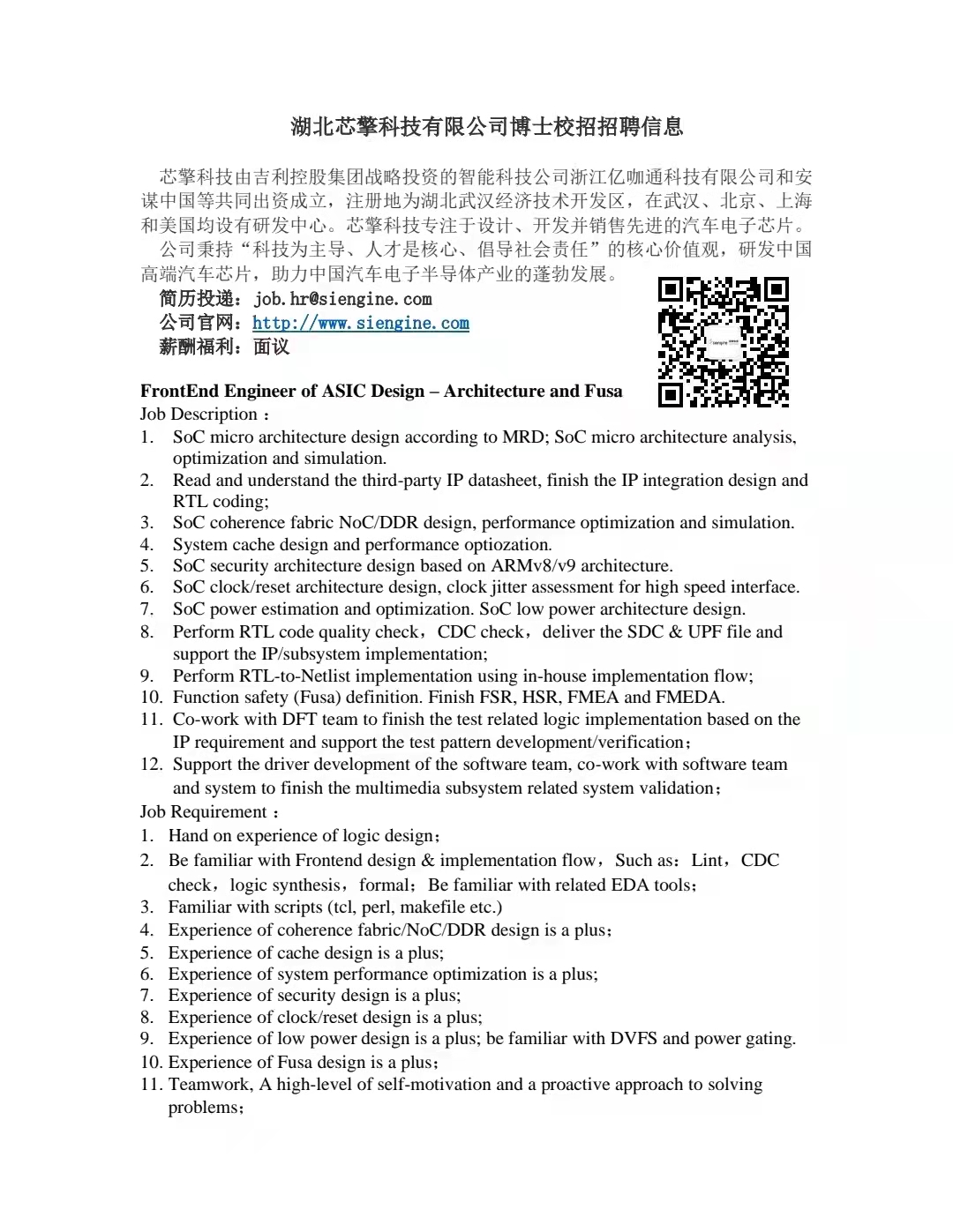 湖北芯擎科技有限公司博士招聘