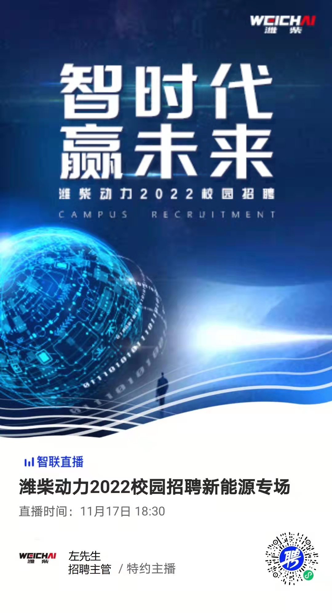 今晚18:30潍柴2022校园招聘新能源补招专场直播,邀您扫码观看!