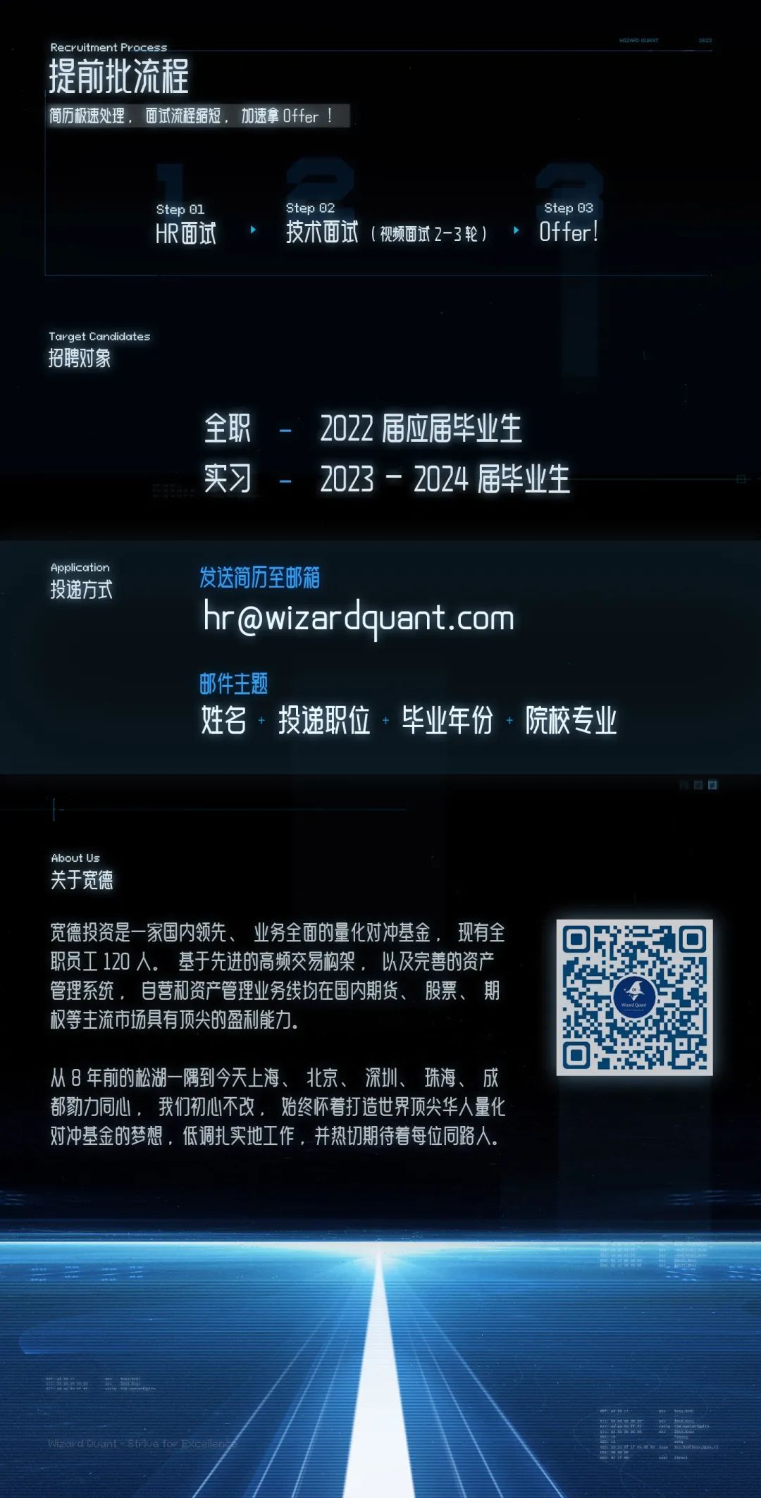 【宽德投资】信息技术部9大核心岗位火热开放! 未来量化IT大神们!想先人一步,拿到国内头部量化对冲基金公司的Offer吗?简历投起来! — 岗位涵盖—C++/大数据/AI平台/高性能计算/FPGA异构计算/数据分析/运维/前端/IT项目经理—薪资亮点 —Special Offer提前发放,至少35w起 能力过人,足够优秀,60w+—工作地点 —base成都/上海/珠海/北京/深圳 简历投递:hr@wizardquant.com全职、实习职位同步开放,点击推文了解岗位详情吧!